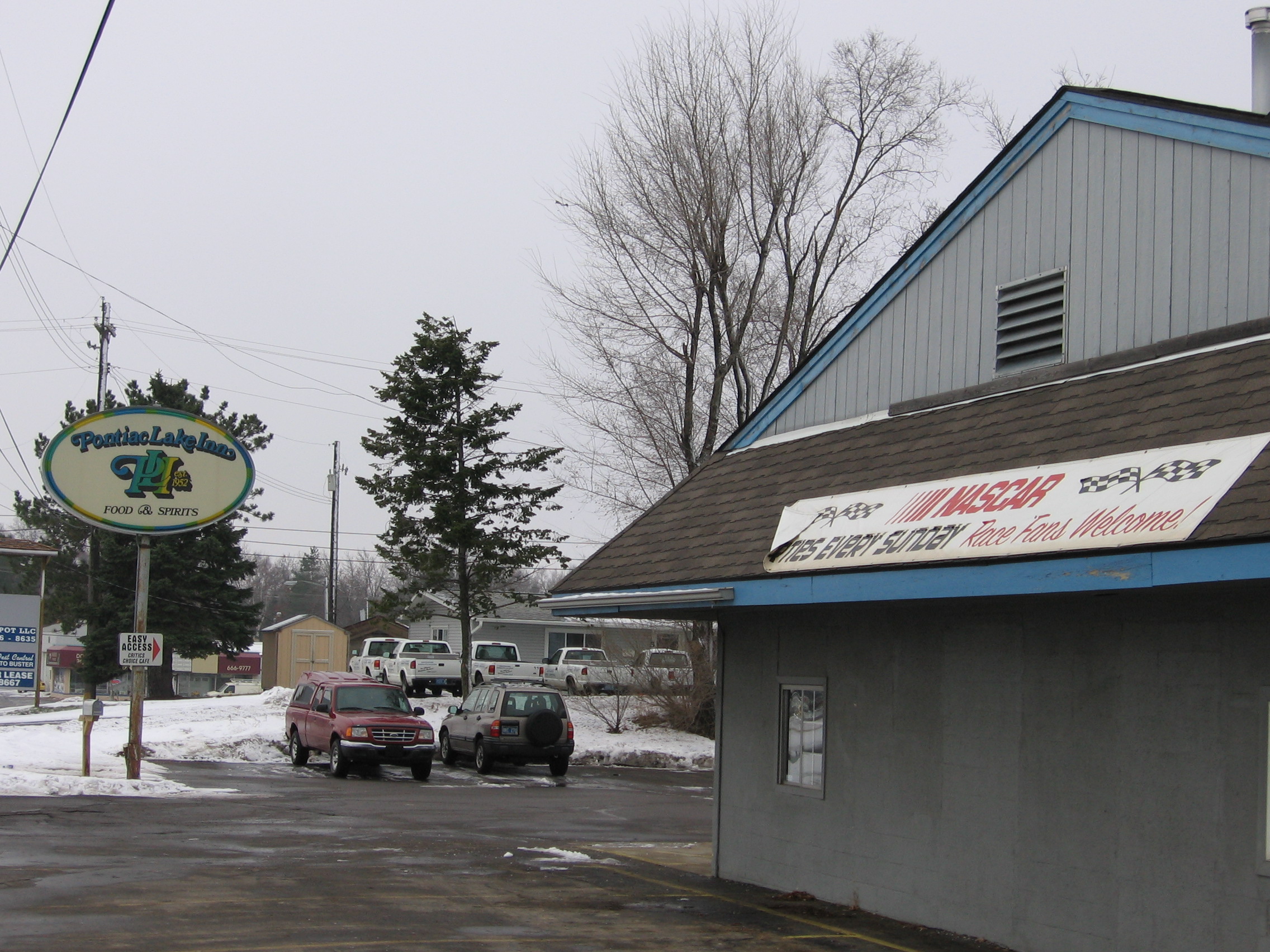 | Comments by Mark Everest Rating: 2 | Matt had been bugging me to go to Pontiac Lake Inn AKA PLI for awhile so I finally gave in. He even called ahead to see if they served chili which is more than I could ever expect out of him. PLI is a lot bigger that I thought it would be by just looking at it from the road formally known as Williams Lake Rd. Inside are a couple of pool tables and a long shuffle board which also acts as a cover-all storage area. Very classy. The sign next to the bar is the menu. On it, among other items, is the PLI 'Pounder' and the Heart Attack Burger. While normally this would sound quite inviting, they just couldn't be done with a bowl of chili. We each decided on the 'JR' burger. At the corner of the bar, there is a sign telling you that this is where you will order and pay for your meal. It was pretty funny to watch Matt step up to the plate and order the two bowls of chili and two Jr burgers. How gay. It was even better to watch the large man, who just selected lynyrd skynyrd on the juke box, try to socially pressure Matt in to getting the 'man sized' burger. "You gotta, you gotta. It's this big - come on you gotta!" The chili came in a nasty styrofoam cup and a plastic spoon. Great. It wasn't exactly cony sauce but it's a very close relative thereof. Beans and stewed tomatoes where thrown in there to make it 'unique'. It wasn't. Blah. The burger turned out to be a pretty good sized one. It would have been better if the bartender/waitress hadn't brought out the condiment caddy which was absolutely disgusting. The open crusty bottle of Tabasco sauce and the warm mayo squirty thing with a hair on it was disturbing. Then watching Matt eat pickles out of the supplied styrofoam container of pickles by hand was enough to make me want to rush back to work. Give PLI a try if you want to play shuffle board. There are a million other places to go if you want to eat without getting food poisoning. |